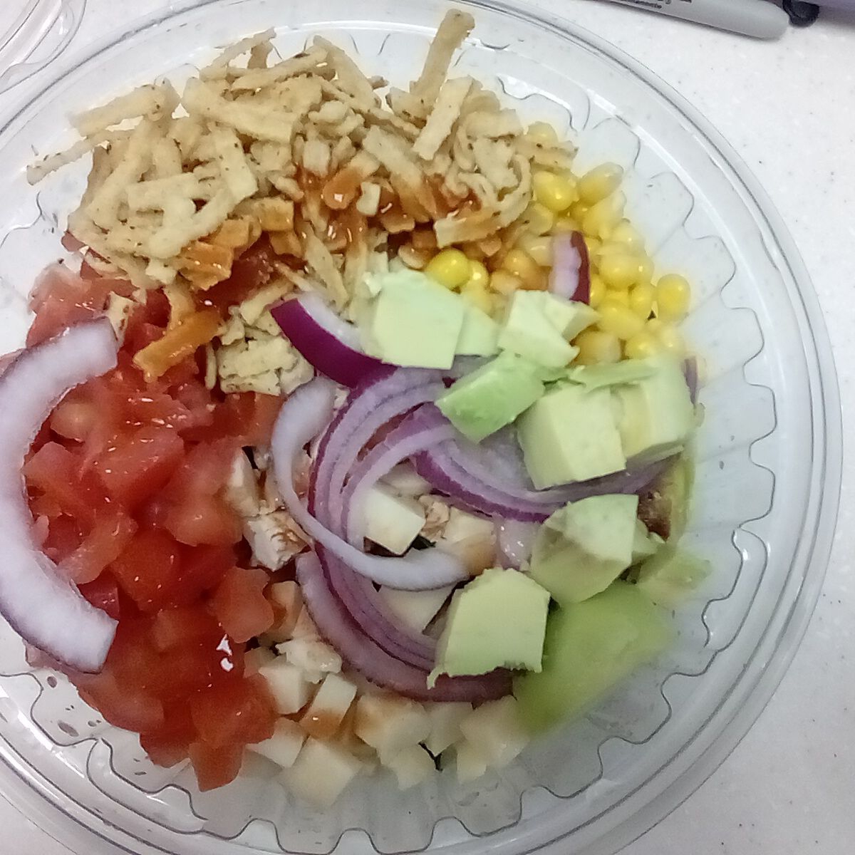 Pechuga asada,con 3 vegetales,y aguacate y un aderezo chico