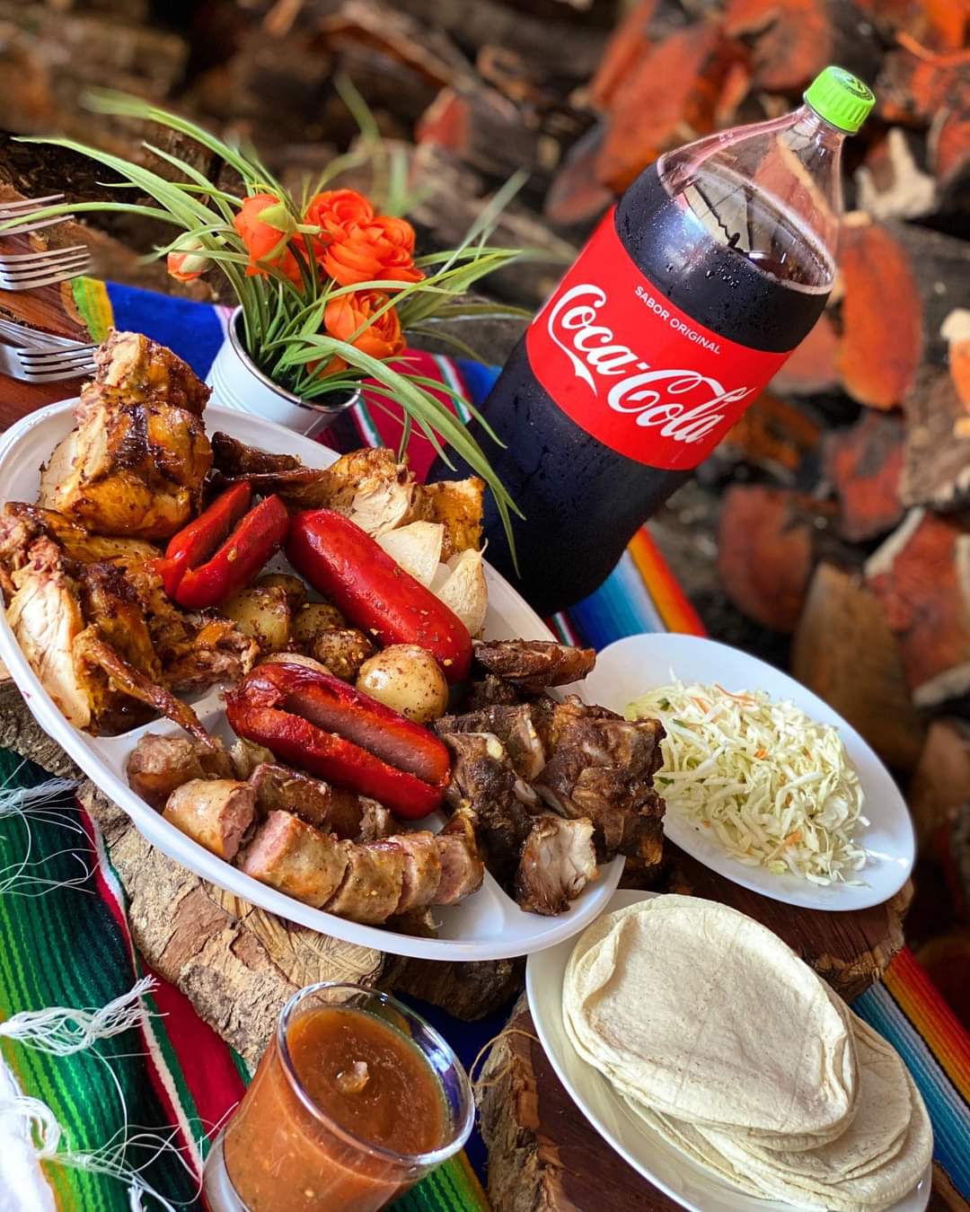 Orden de Papas*1 + Orden de Salchichas*1 + Coca-Cola 3L*1 + 1 Pollo*1 + 1/4 de Longaniza*1 + 1/2 de Costillas*1 + Tortilla*1 + Orden de Cebolla*1
