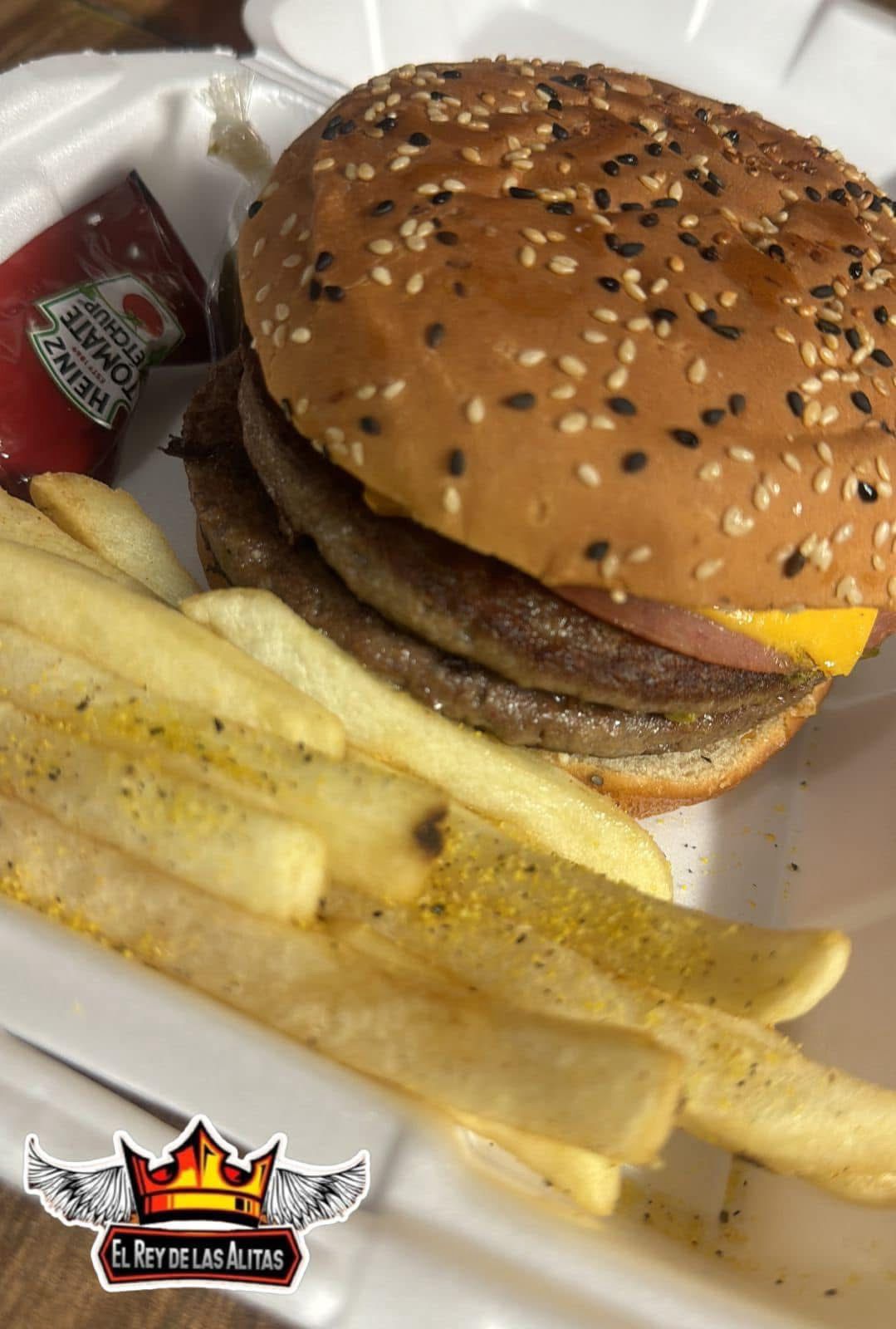 Carne arrachera, queso manchego, tomate, cebolla, lechuga, mayonesa y catsup.