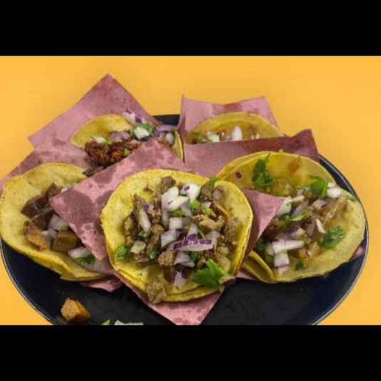 Acompañado de cebolla cilantro, limón y salsa.