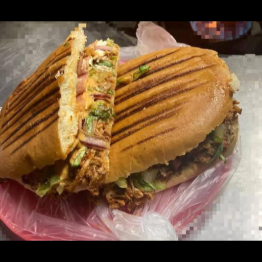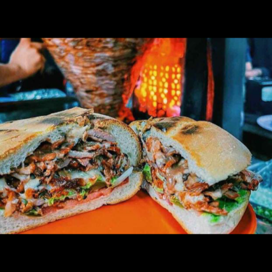 Pan grande,Pastor, chorizo, jamón, lechuga y salsa.