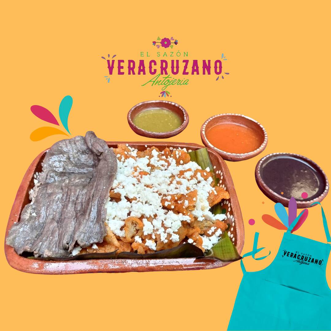 6 enchiladas Veracruzanas con la salsa de tu elección, queso fresco y aguacate, acompañadas con orden de frijoles molidos y refritos, (cebolla opcional).