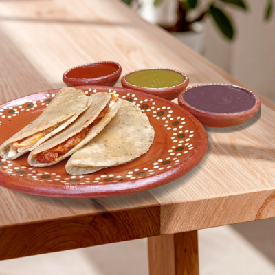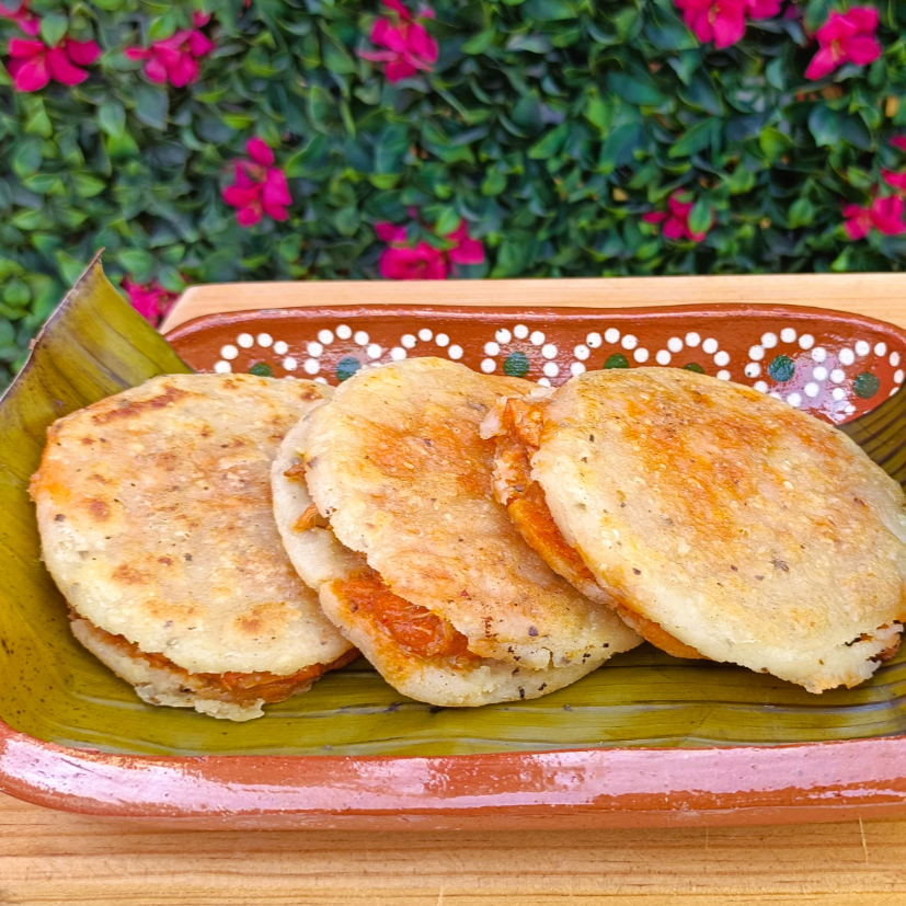 Deléitate con 3 quesadillas de maíz, cocinadas en comal y rellenas de queso hebra o tu topping favorito. ¡Sabor auténtico!