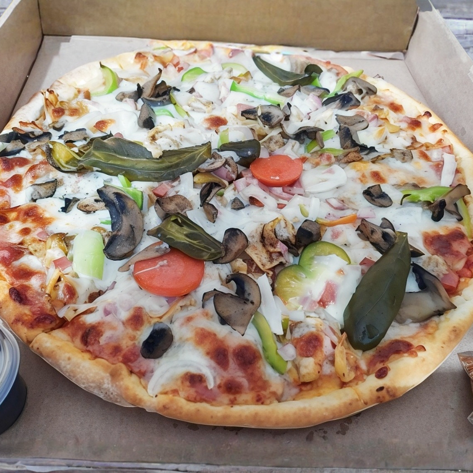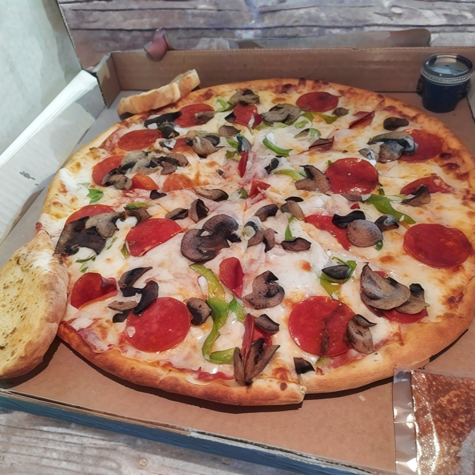 Queso, Jamón, Peperoni, Champiñones, Pimiento y Cebolla. Con lo mejor de las Carnes Frías y Vegetales.
