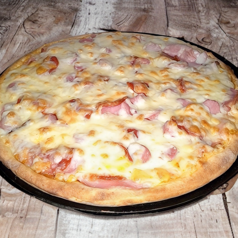 Queso, Jamón, Peperoni, pimiento y Cebolla. LA PREFERIDA DE LOS NiÑOS.