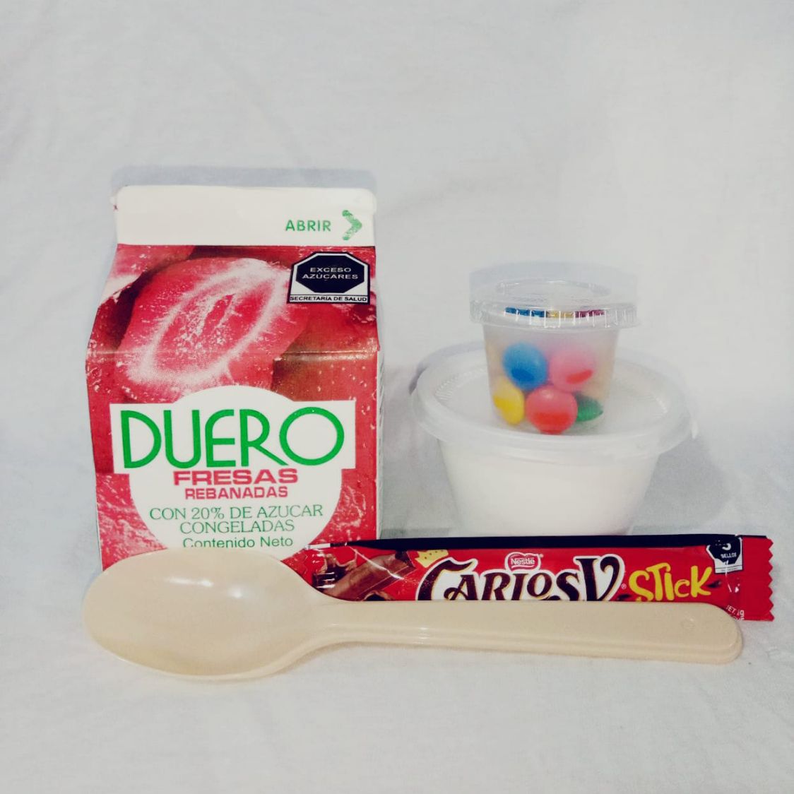 1 pza fresa congelada 283 gr, acompañado de 4 oz chantilly + 2 topping a elegir.