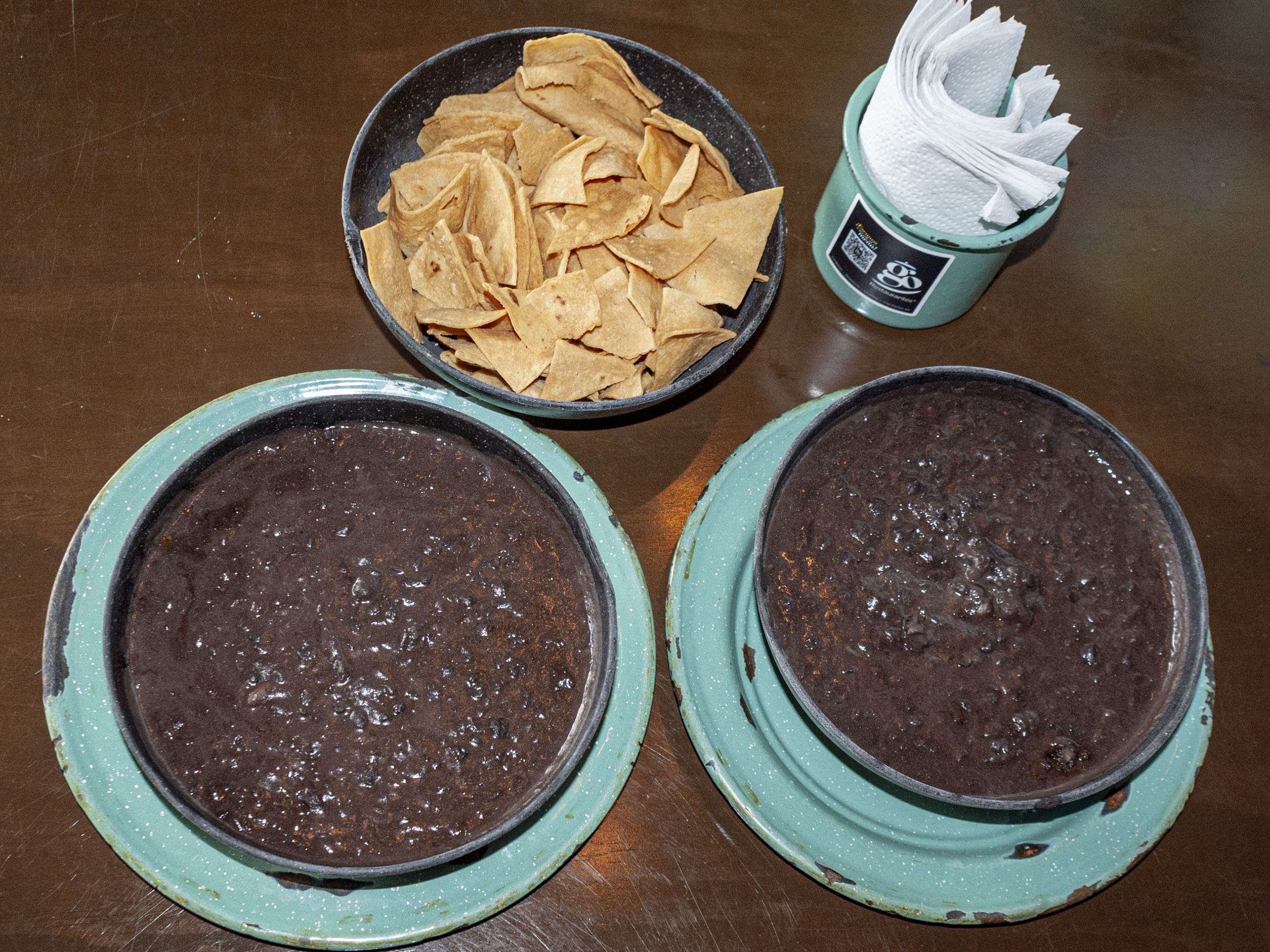 Enfrijoladas rellenas de huevo, con crema, cebolla, aguacate y longaniza