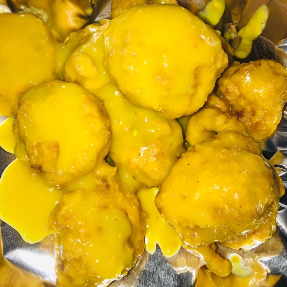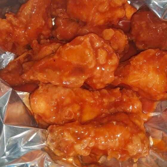 papas francesa, acompañada de palomitas de pollo bañada en una salsa a elegir con aderezo bbq, chipotle y ranch