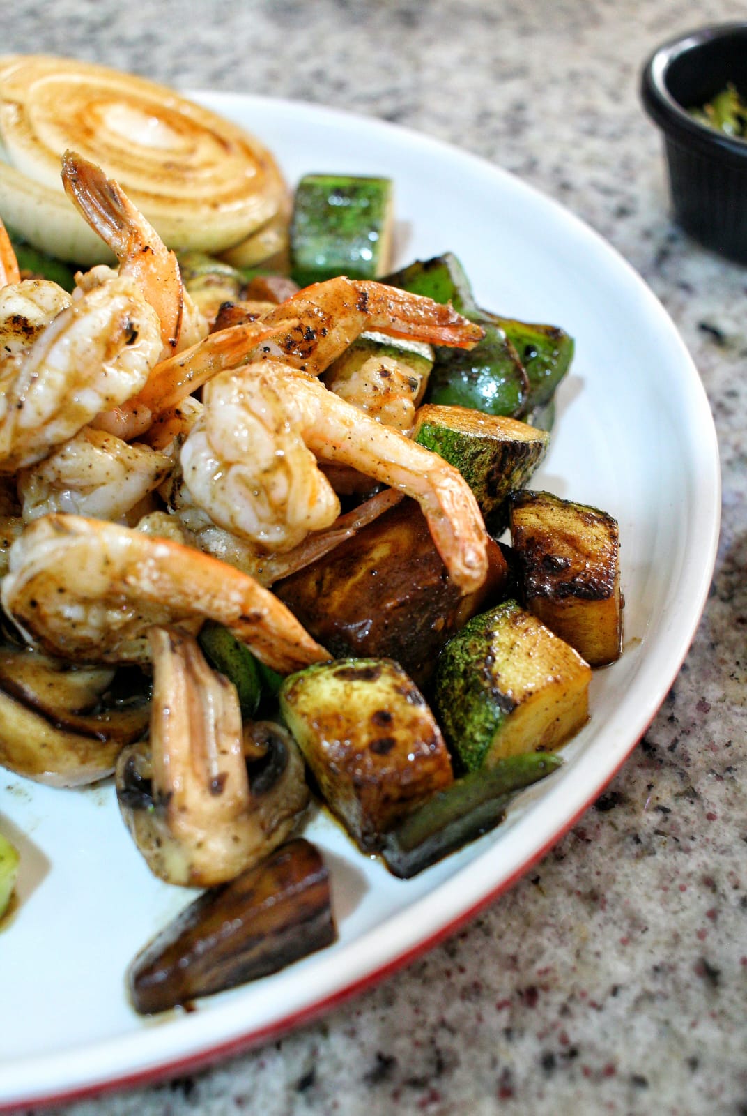 Camarón, lechuga, aguacate y pepino con aderezo.