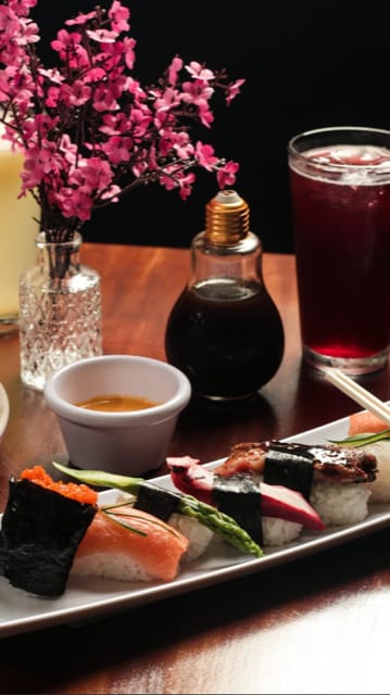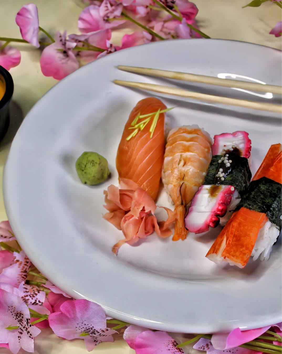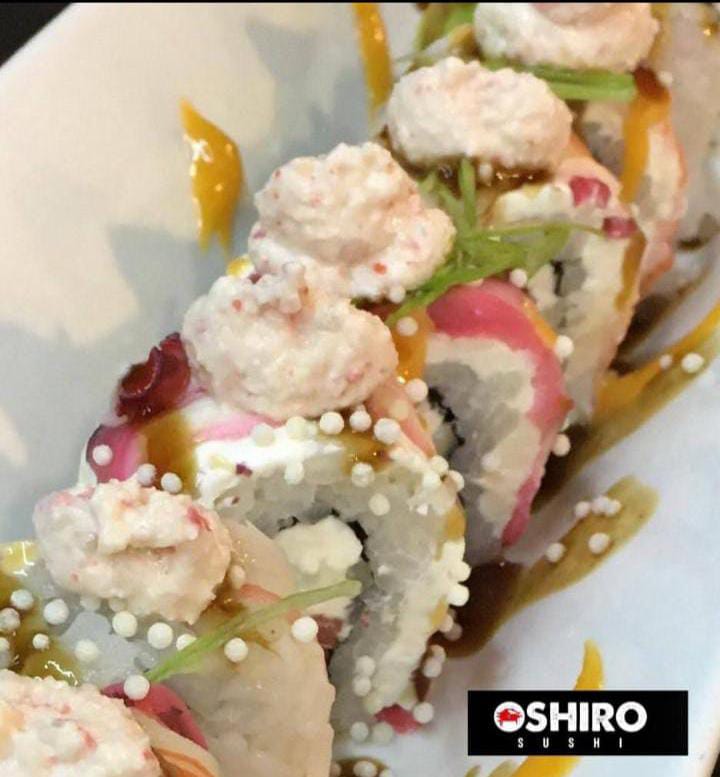 Salmón, aguacate, atún , kani, queso, pulpo con ajonjoli.