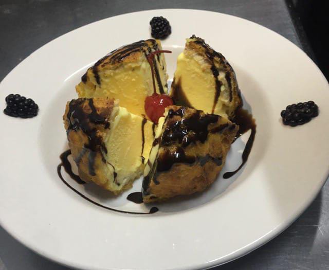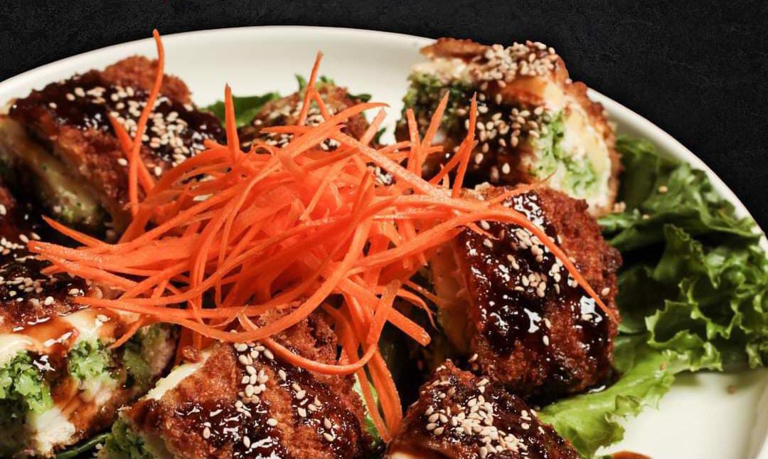 Rellena de verdura y queso manchego con salsa teriyaki empanizado.