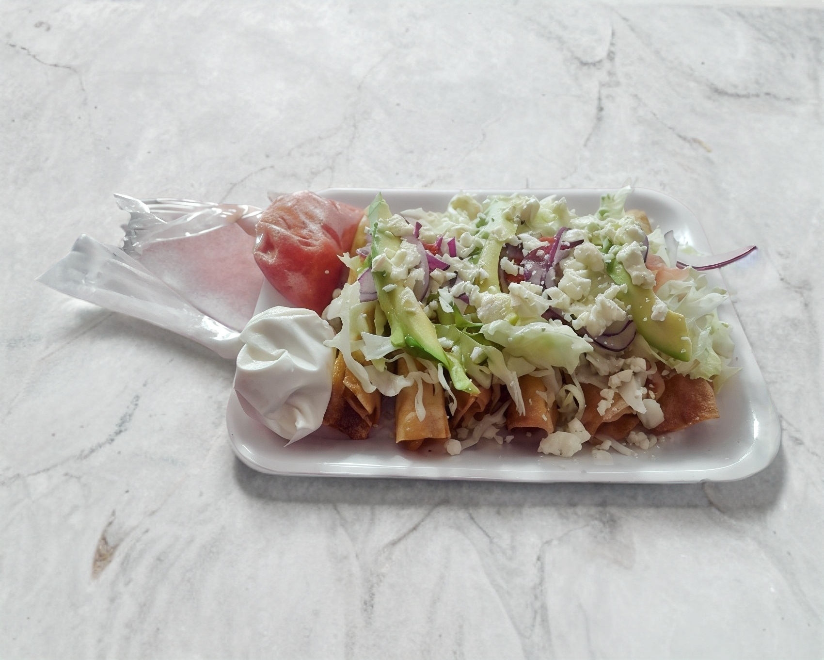 Taquitos dorados de pollo orden de (5) bien preparado
