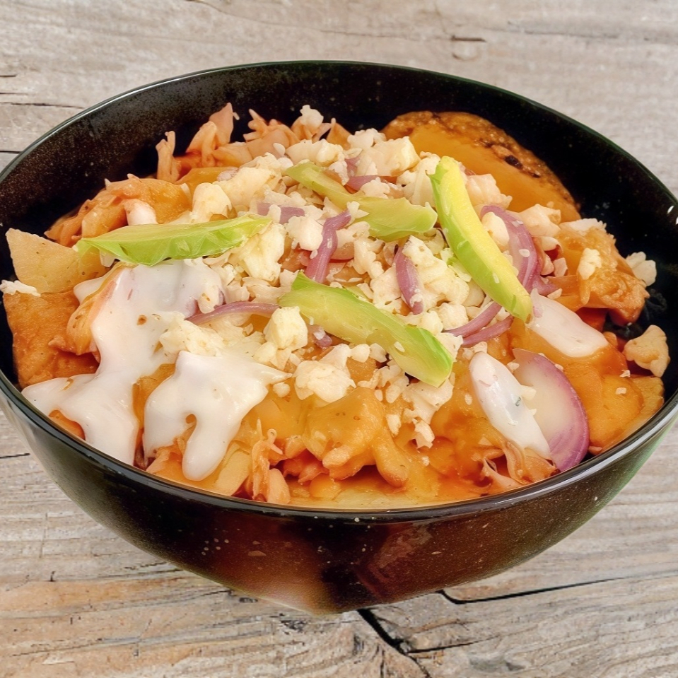Totopos crujientes bañados en una salsa chipotle, con un sabor ahumado y ligeramente picante.