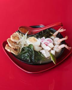 (Pollo, camarón, tofú, cebollín, espinaca, wuakamen, naruto, shichimi toragashi)