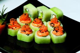 (Camarón, pepino, aguacate y masago)