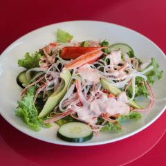 (Lechuga, brócoli, espinaca, champiñón, cangrejo, aderezo de yoghurt y masago)