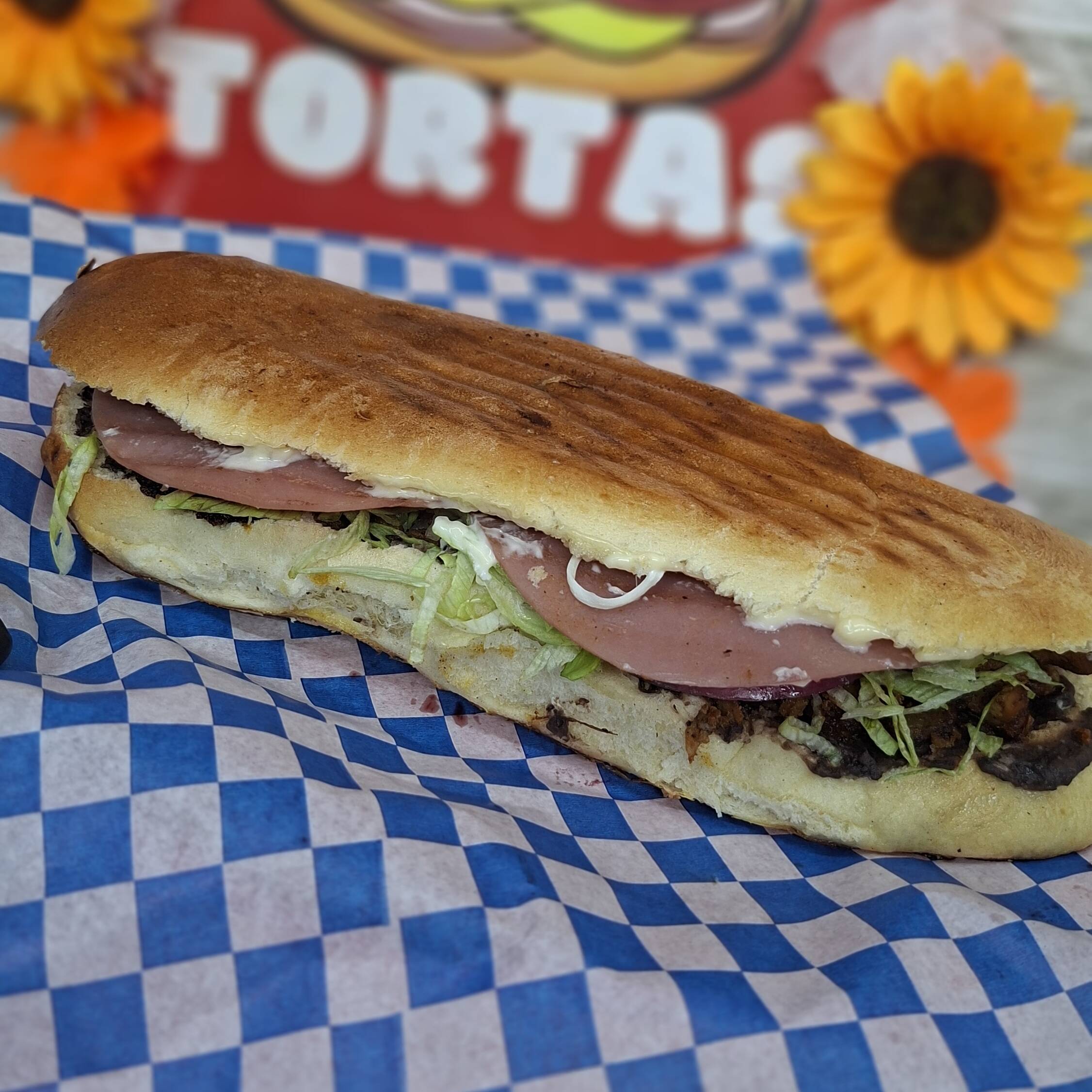 Todos las tortas incluyen; lechuga, tomate, cebolla, aguacate 1 INGREDIENTE A ELEGIR (PIERNA, JAMON, SALCHICHA, Y ASADA)
