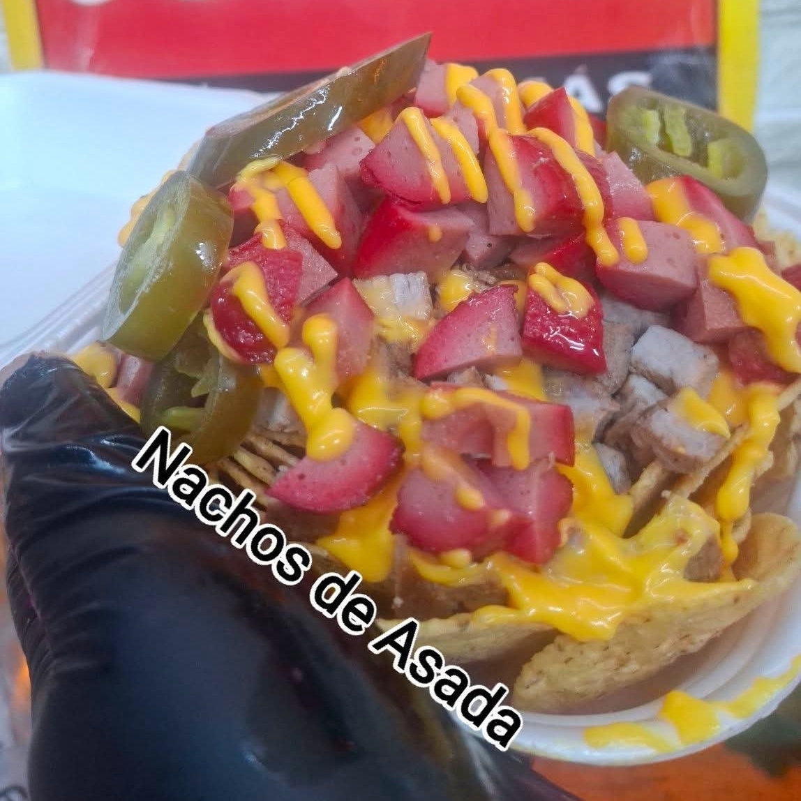 NACHOS CON CARNE ASADA Y SALCHICHA PARA ASAR CON QUESO PARA NACHOS