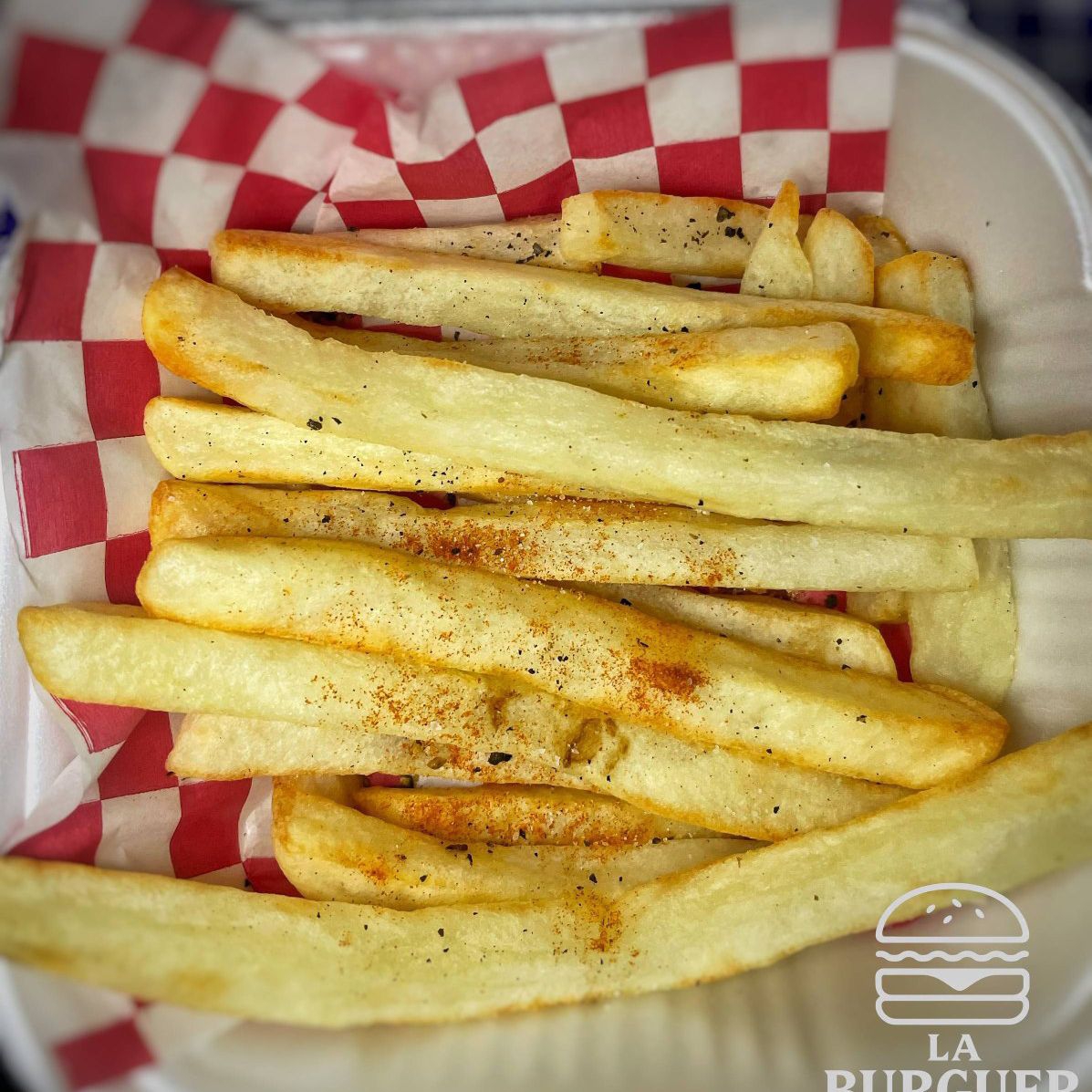 🍟 Papas a la Francesa Clásicas (200g) Porción generosa de 200 gramos de papas doradas y crujientes. Ligeramente sazonadas con un toque especial de pimienta y pimentón. ¡Perfectas para dippear!