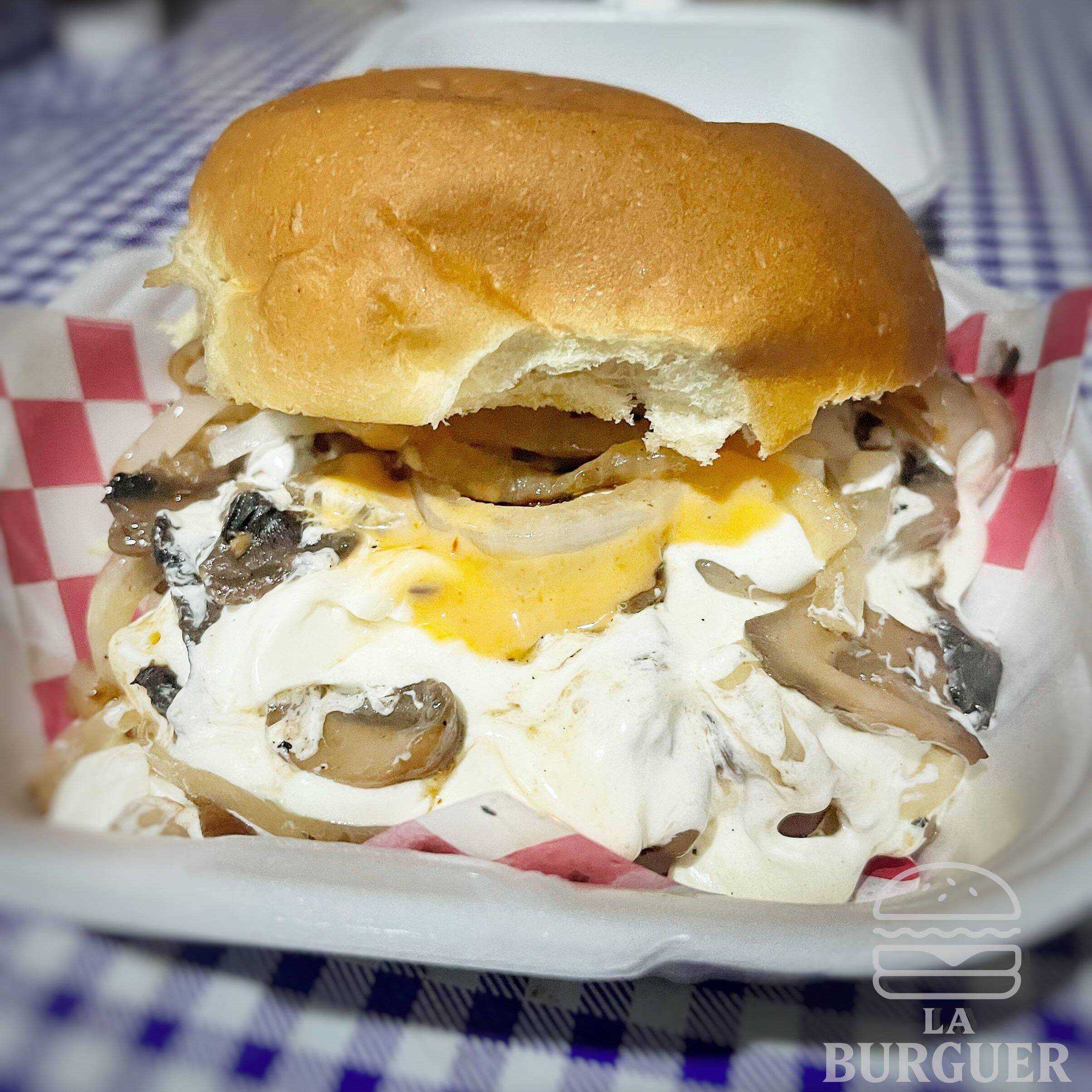 Jugosa carne de res, cubierta con una generosa porción de champiñones y cebollas salteadas en mantequilla. El toque final: rico queso gratinado fundido a la perfección. Una hamburguesa que eleva la experiencia.