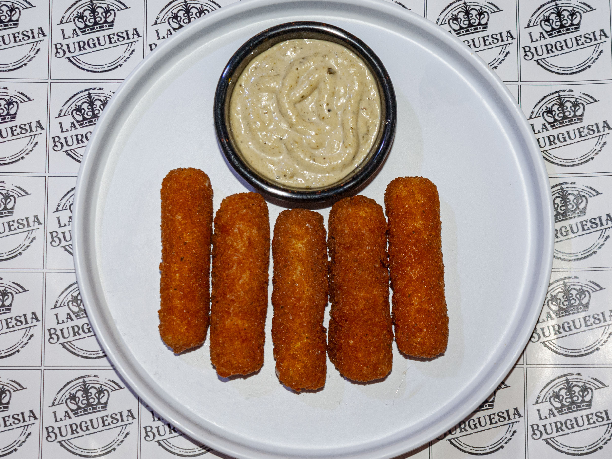 5 Piezas, crujiente empanizado rellenos de queso mozzarella acompañados de aderezo de tu elección: chipotle o salsa tártara.