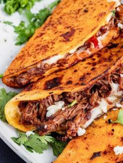 Gringa De Arrachera de res con queso Oaxaca Fundido.
