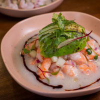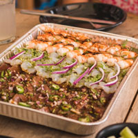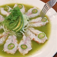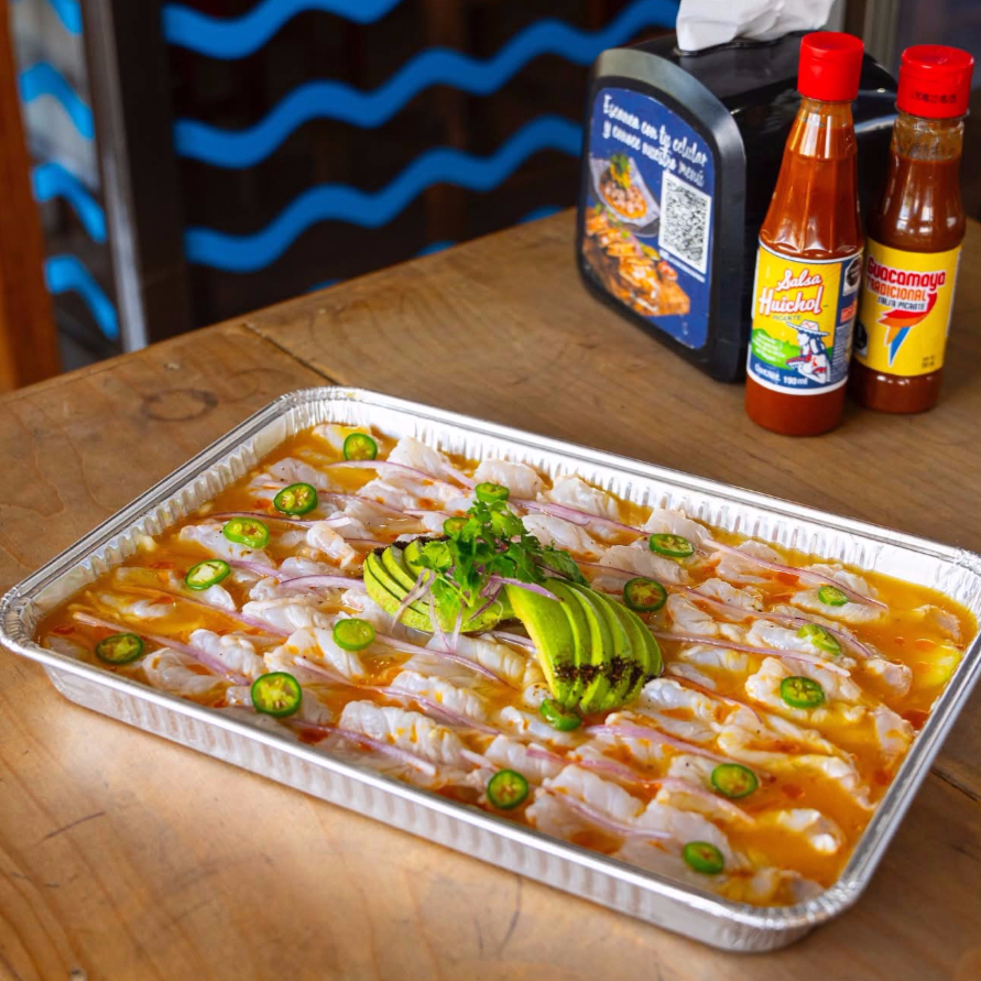 Disfruta de un tiradito de atún, camarones en aguachile (verde, rojo o negro) y camarones botaneros.