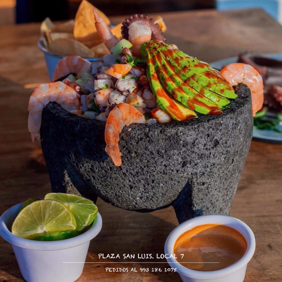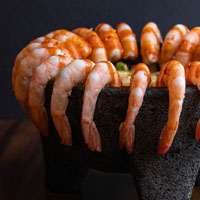 Camarones frescos y jugosos preparados en nuestro tradicional molcajete, ideal como botana para compartir.