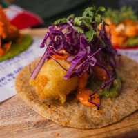 El clásico taco gobernador con camarones y queso, preparado con un delicioso toque a las brasas para un sabor ahumado.