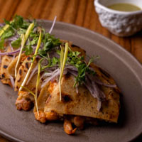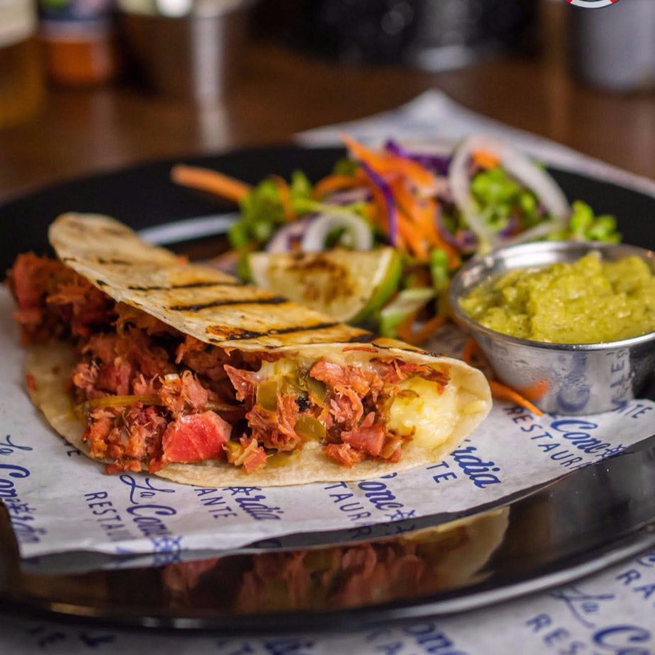 Delicada gringa rellena de marlín ahumado y queso fundido, una combinación irresistible.