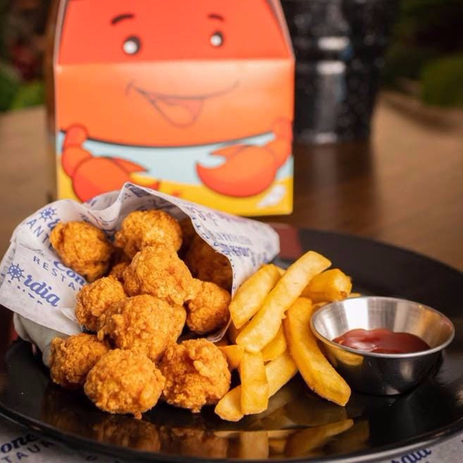 Pescado capeado acompañado de papas a la francesa y un jugo del valle de 200 ml. Ideal para niños