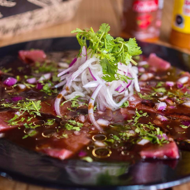 Finas láminas de atún fresco, marinadas con cítricos y especias, para una experiencia ligera y vibrante.