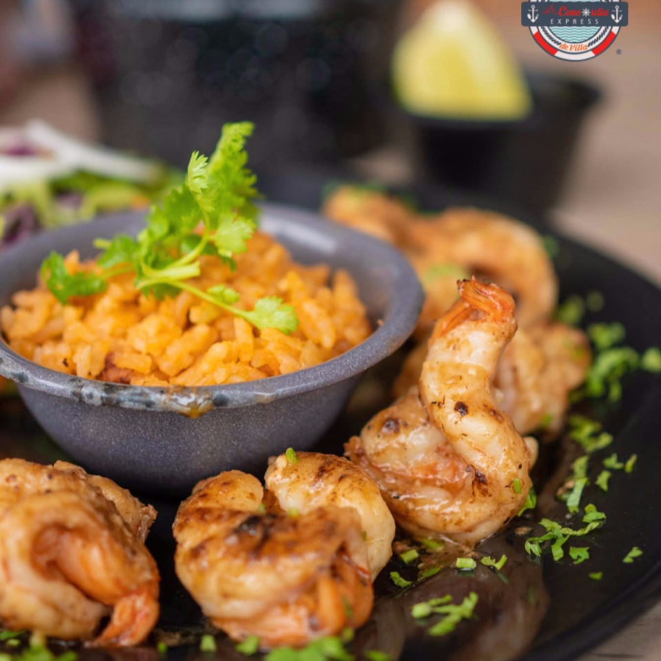 Camarones frescos salteados en una deliciosa salsa de ajo y chile guajillo, llenos de sabor.