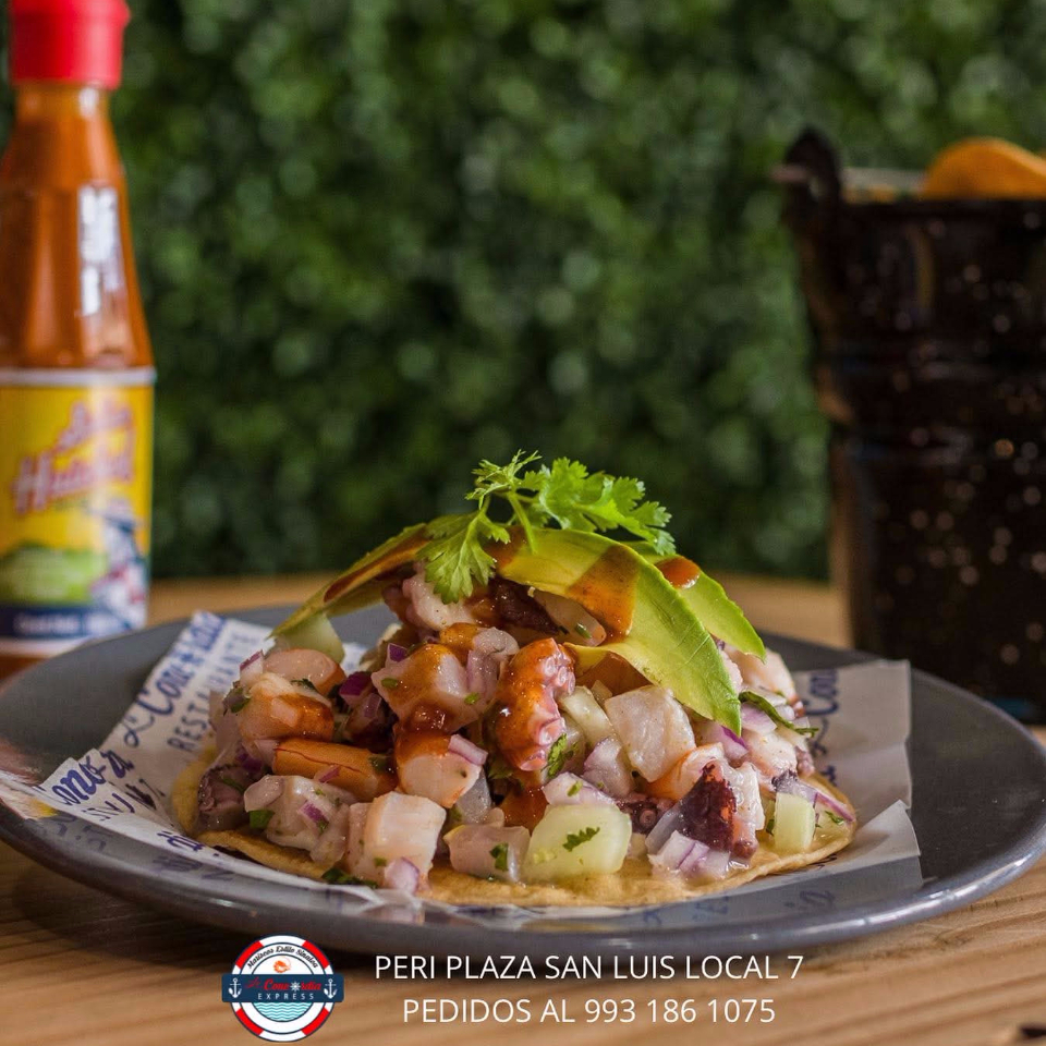 Tostada con nuestro tradicional ceviche de pescado, ligero y lleno de sabor.