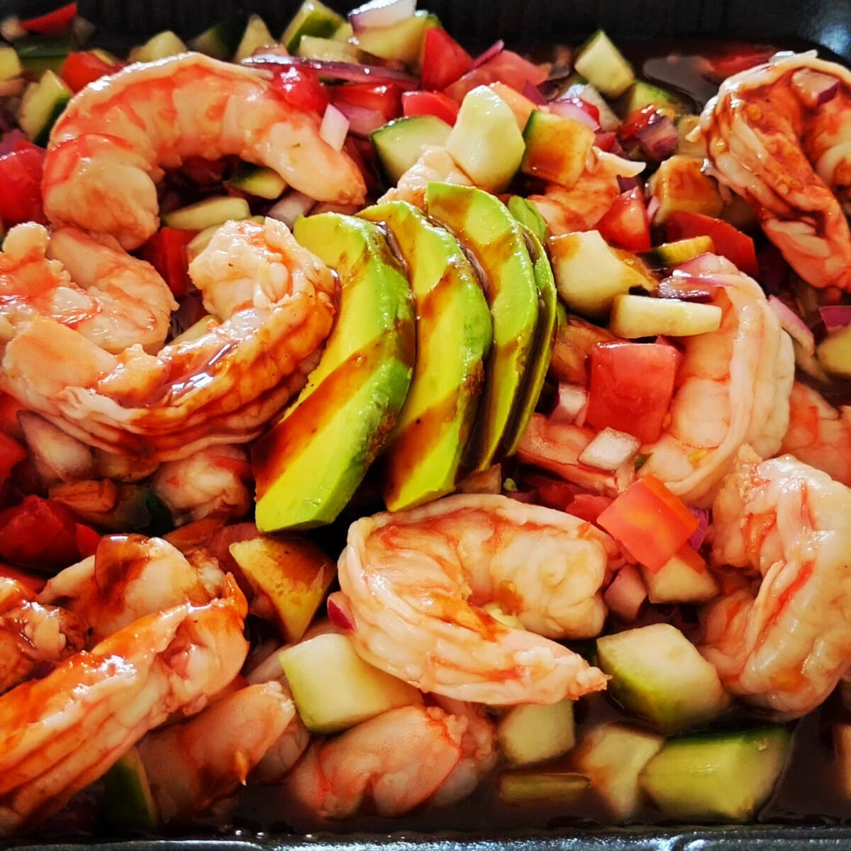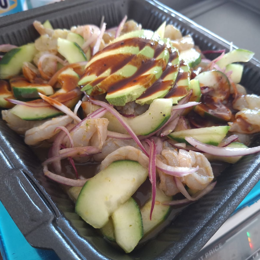 Camarón fresco cocido, mezclado con jitomate, cebolla y pepino, con un toque de chile y sal. Refrescante, cítrico y lleno de sabor.