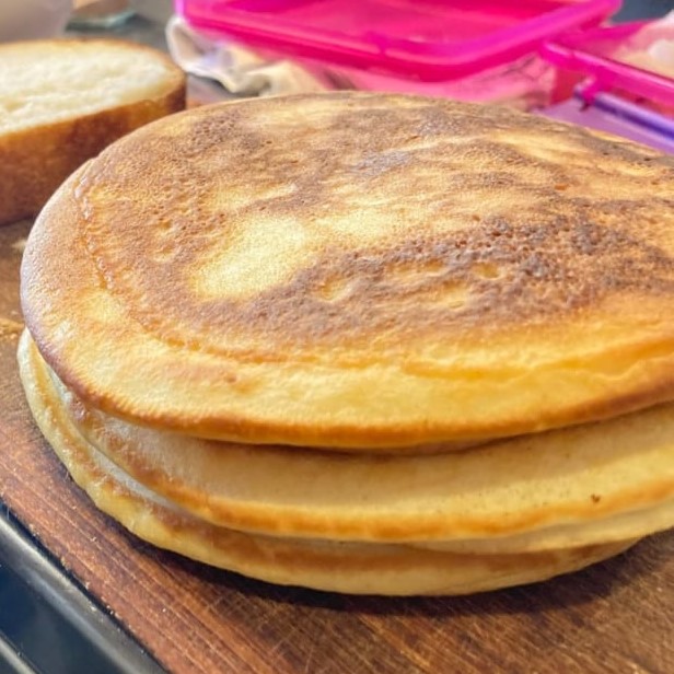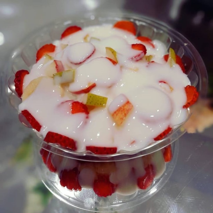 Orden de 3, servido con miel maple, miel de abeja, Lechera o Nutella, incluye fruta.