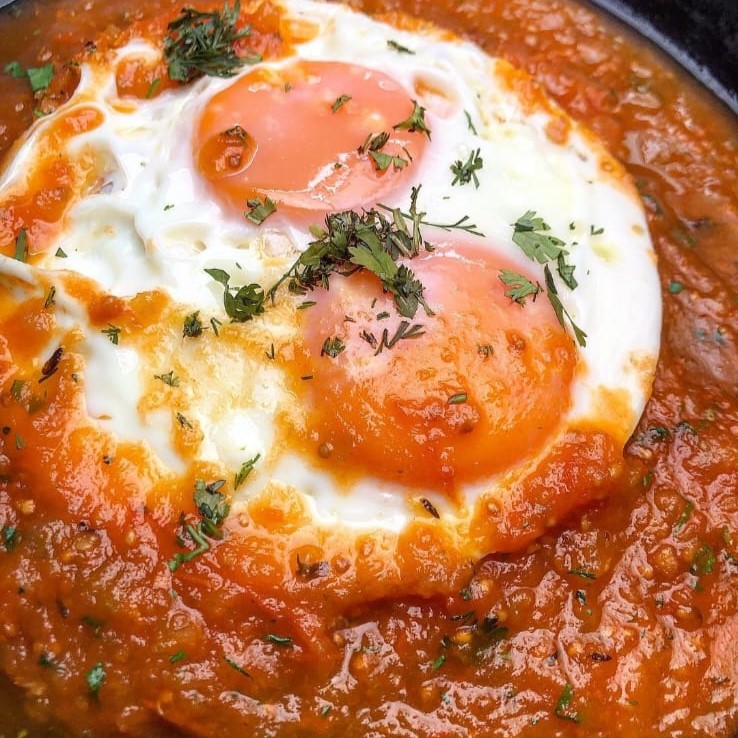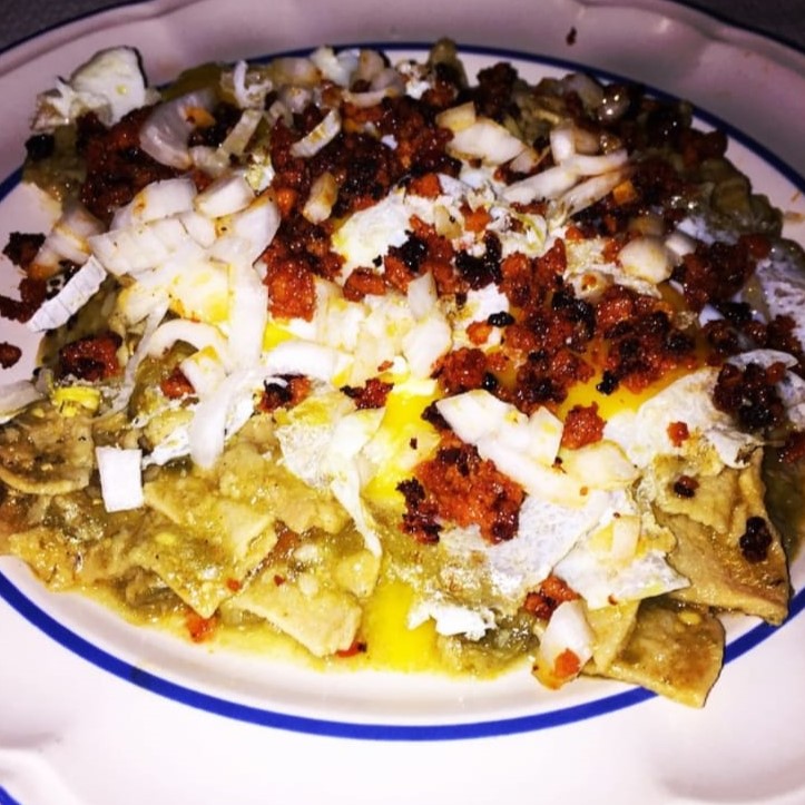 Salsa verde con pollo a la plancha, chorizo y huevito frito.