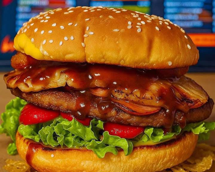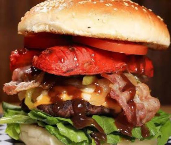 150gr. De carne arrachera de res, queso americano, bañado en BBQ, lechuga, tomate, cebolla y mayonesa.