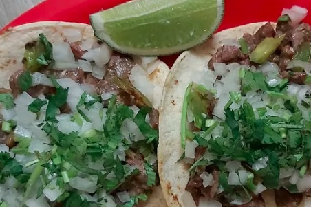 Tortilla de maiz con carne asada.