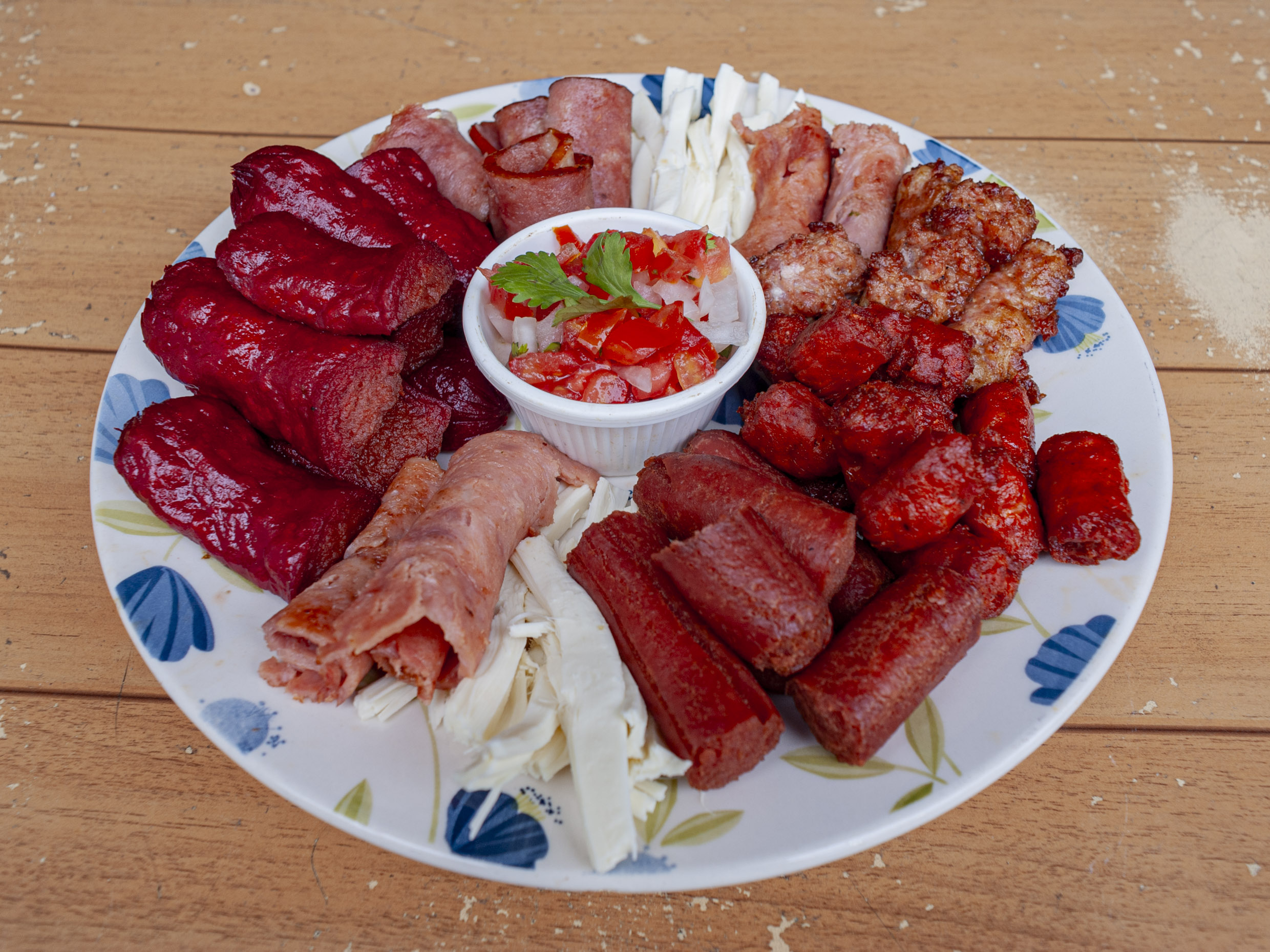 Salch. Para asar, Chorizo argentino, Tocino Frito, Queso de Hebra, Queso Manchego, Jamon y Queso Crema.