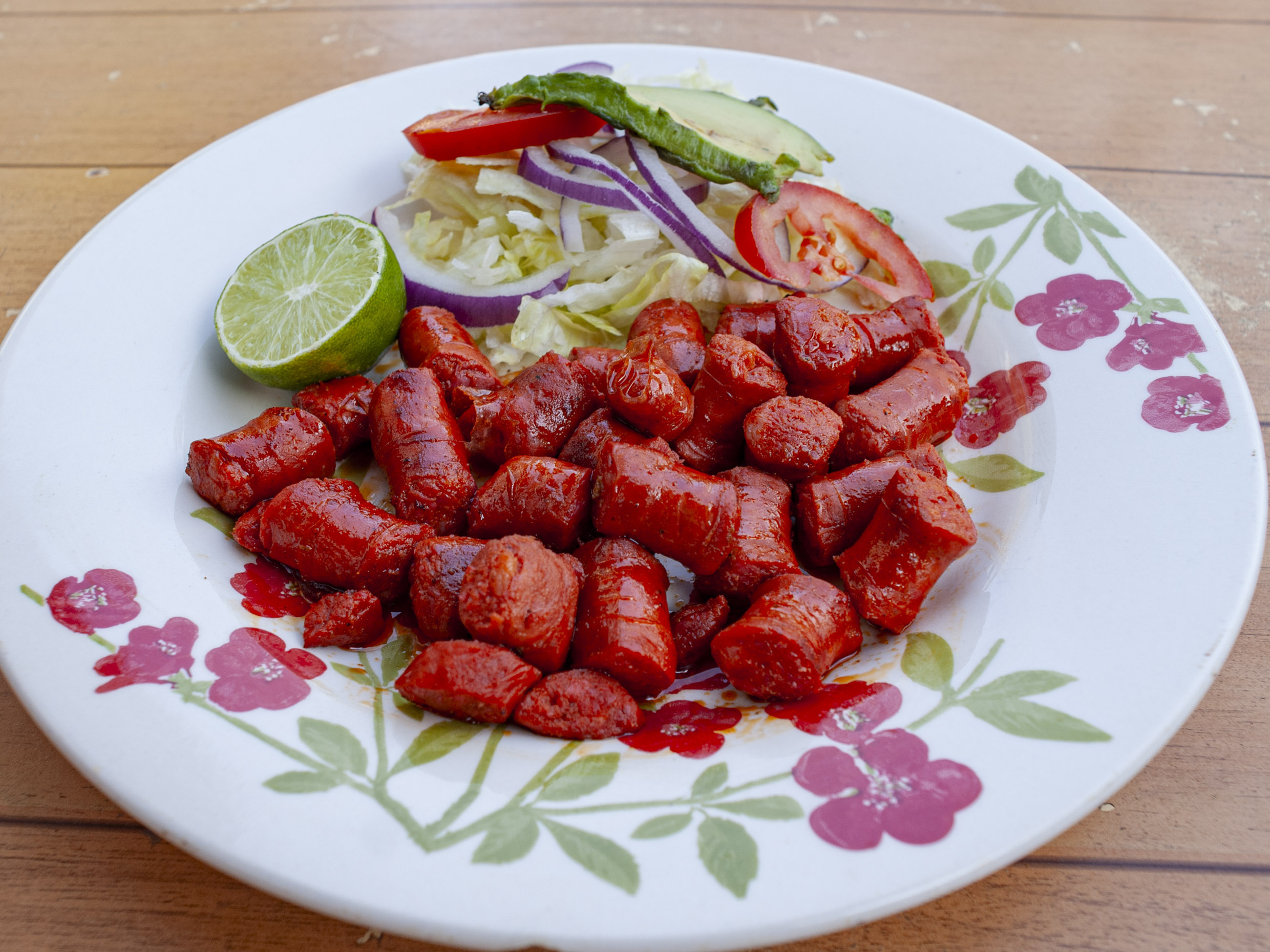Tortila de maiz con carne (chorizo argentino).