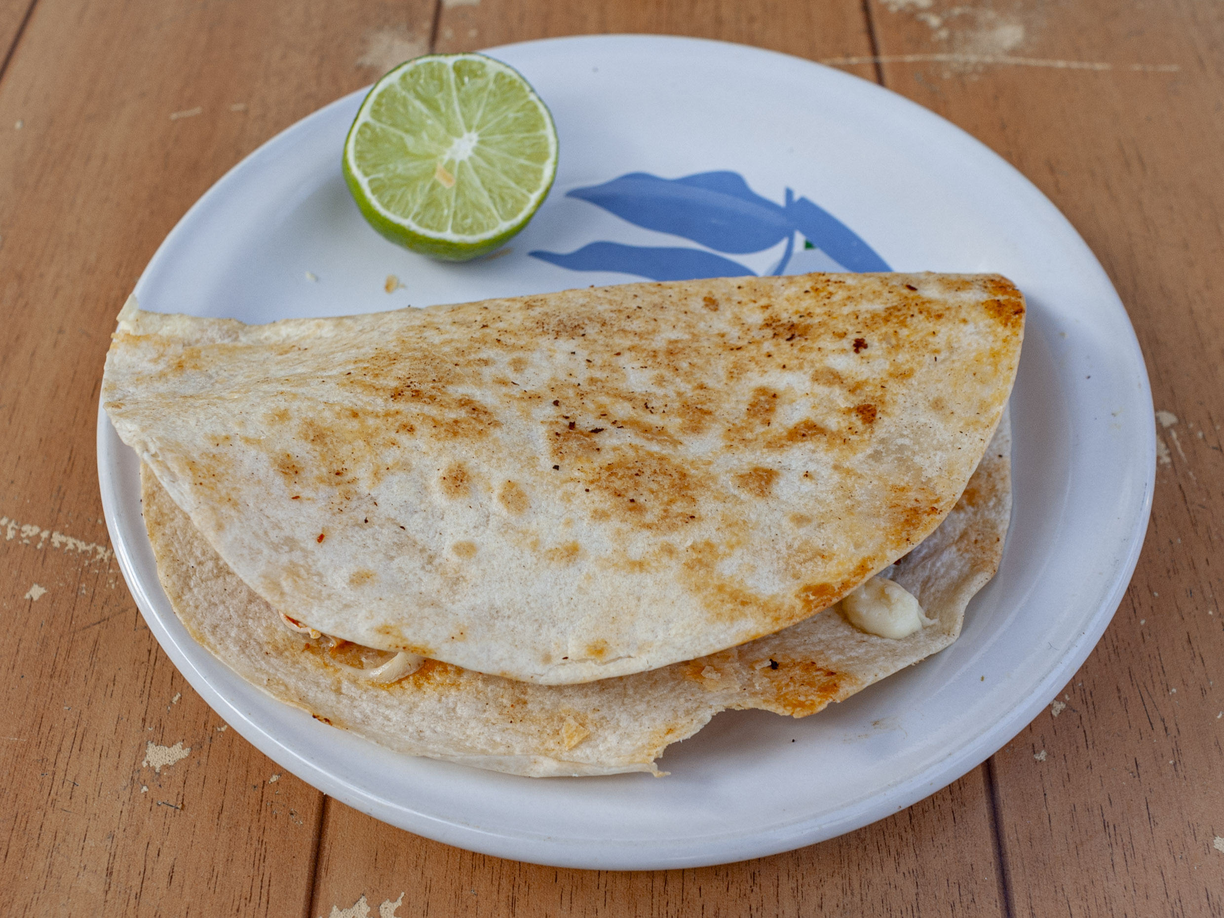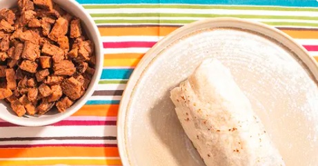 Tortilla de harina con carne y queso.