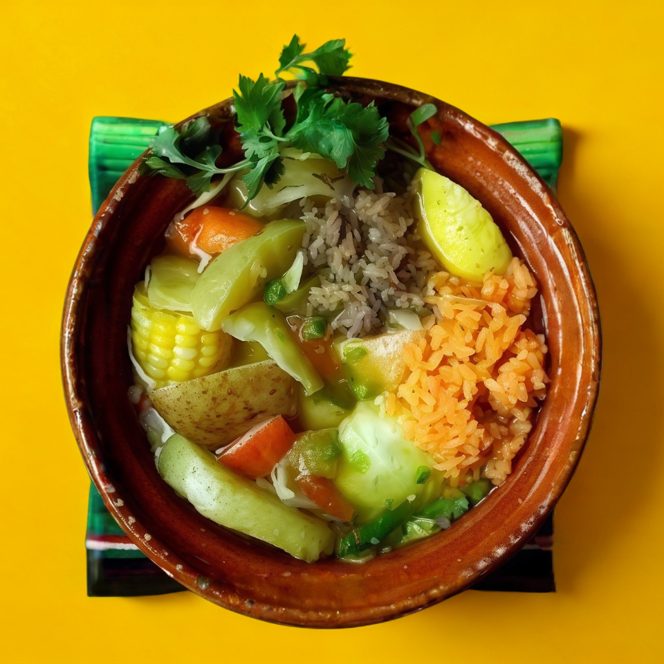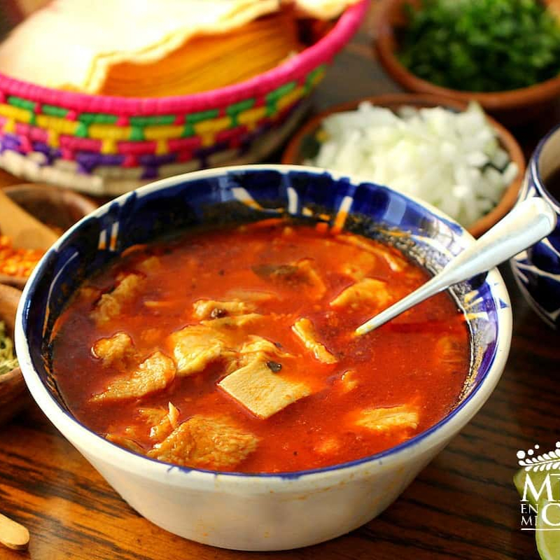 Caldo de mondongo rojo arroz tortilla cebolla totopos