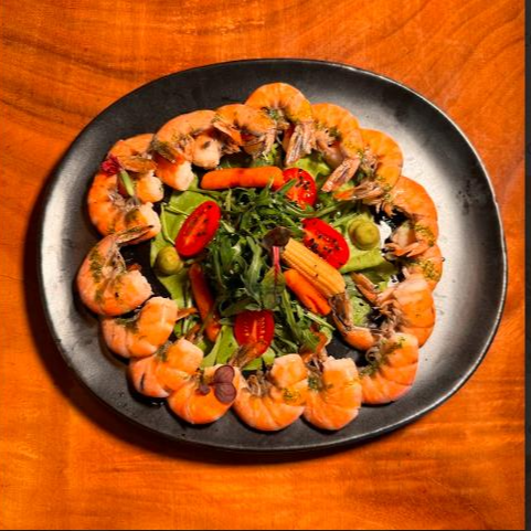 Filete de pescado con camarones aderezado en pasta zarandeada, acompañado de ensalada y mix de verduras.