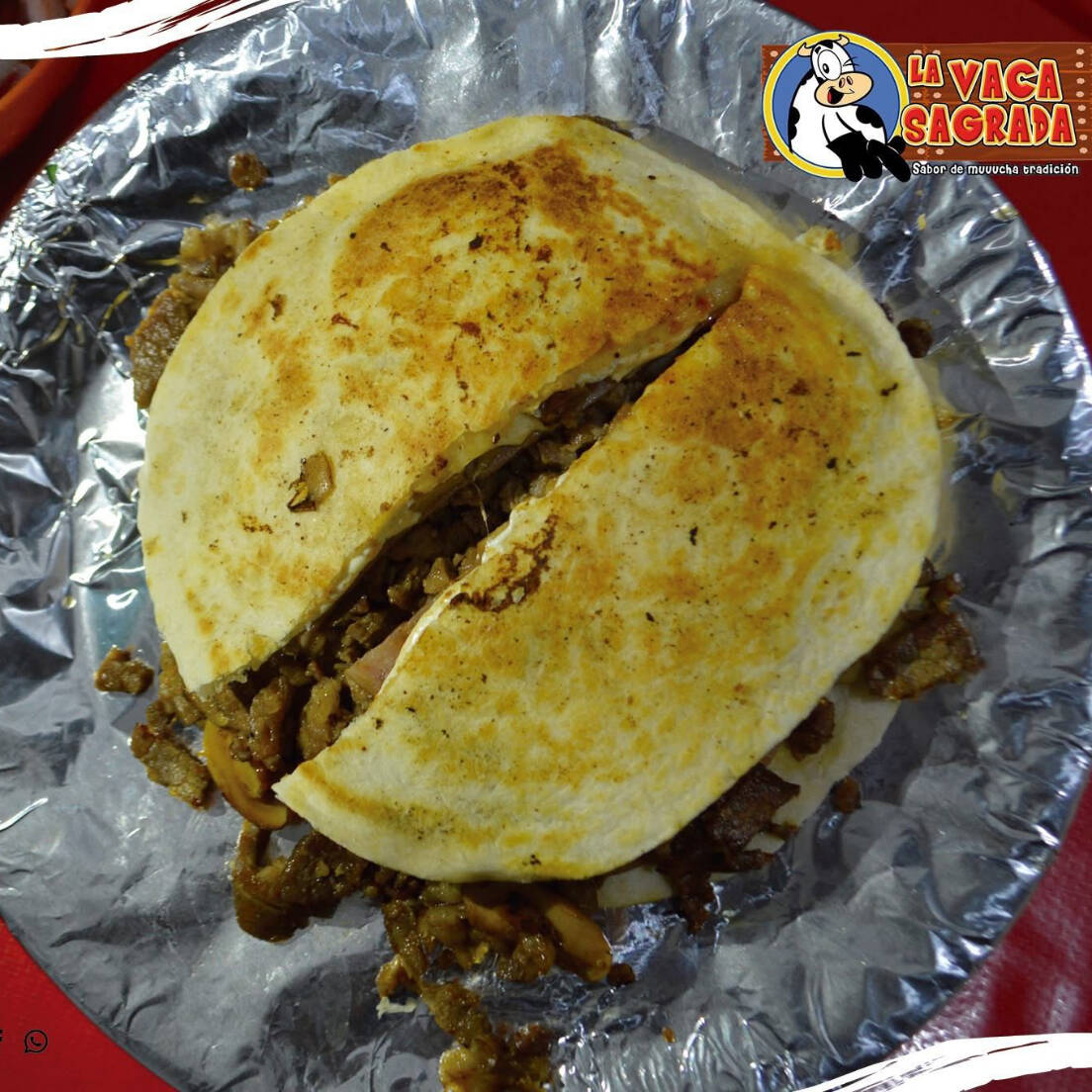 Sincronizada con jamon, queso, champiñones y carne al pastor