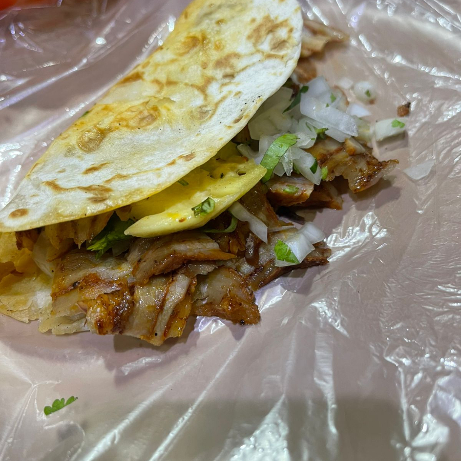 Elaborada con aguacate, cebolla asada, jamon, mayonesa, queso y carne al pastor