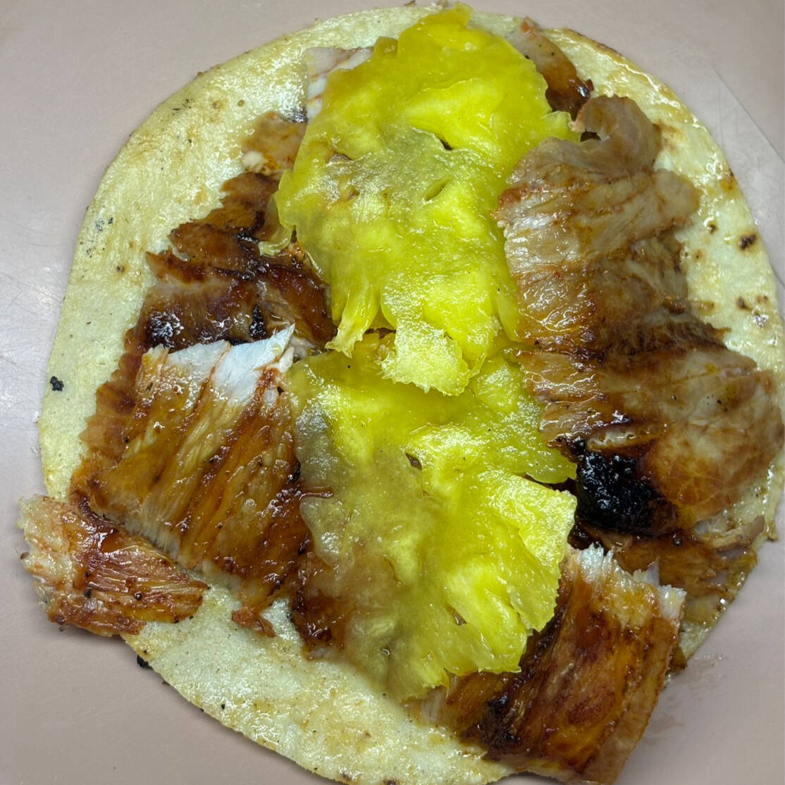 Tortilla de maiz con carne de pastor