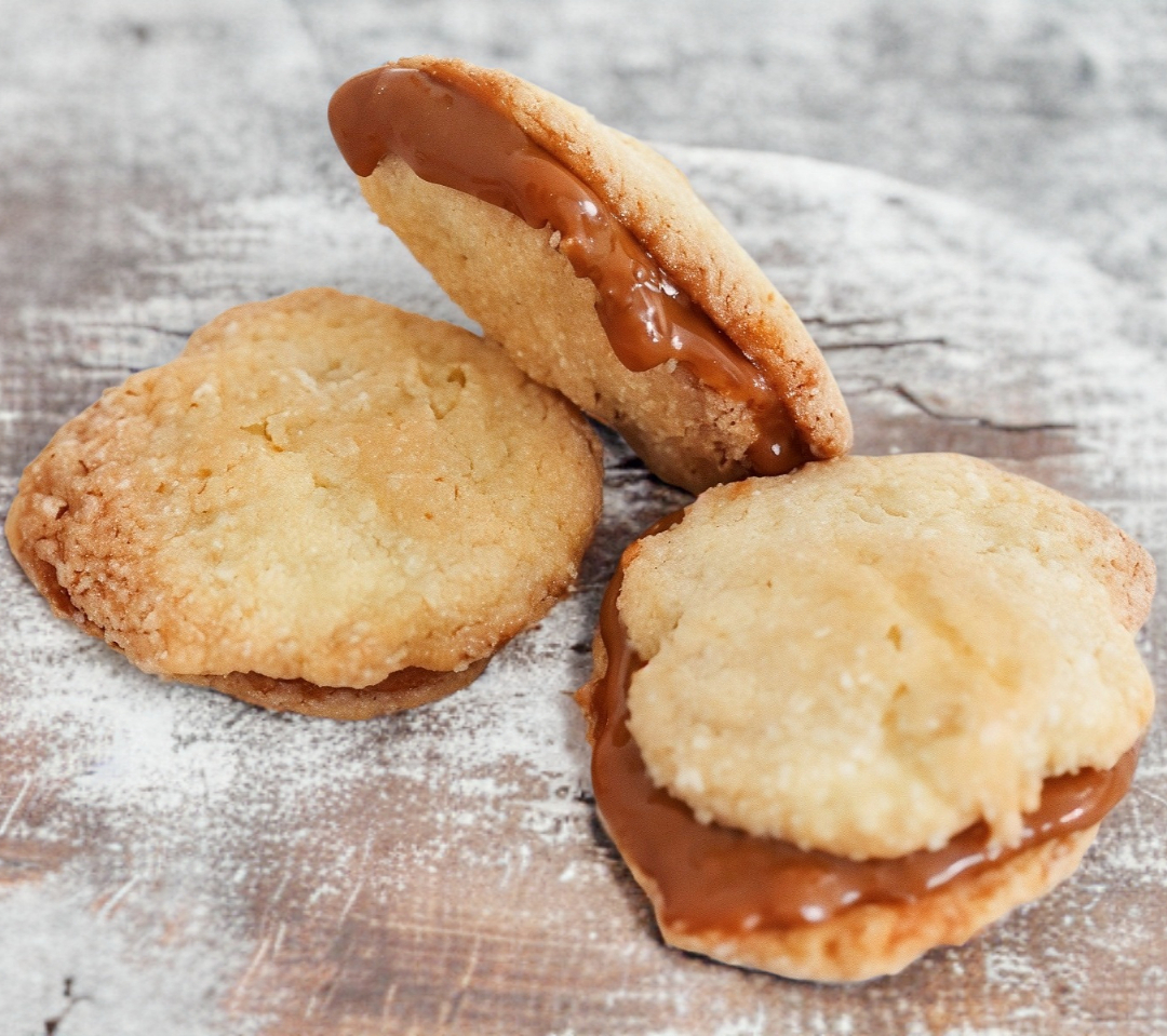 8 pzas - Galletas azucaradas de mantequilla unidas con dulce de leche.