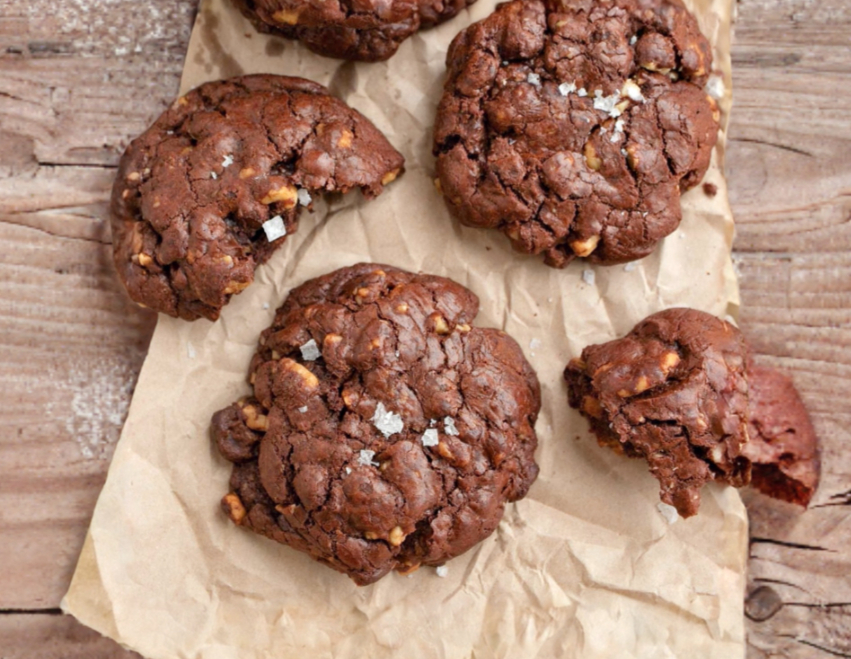 1 pza - Galleta de triple chocolate fudge con nuez de Castilla y escamas de sal de mar.