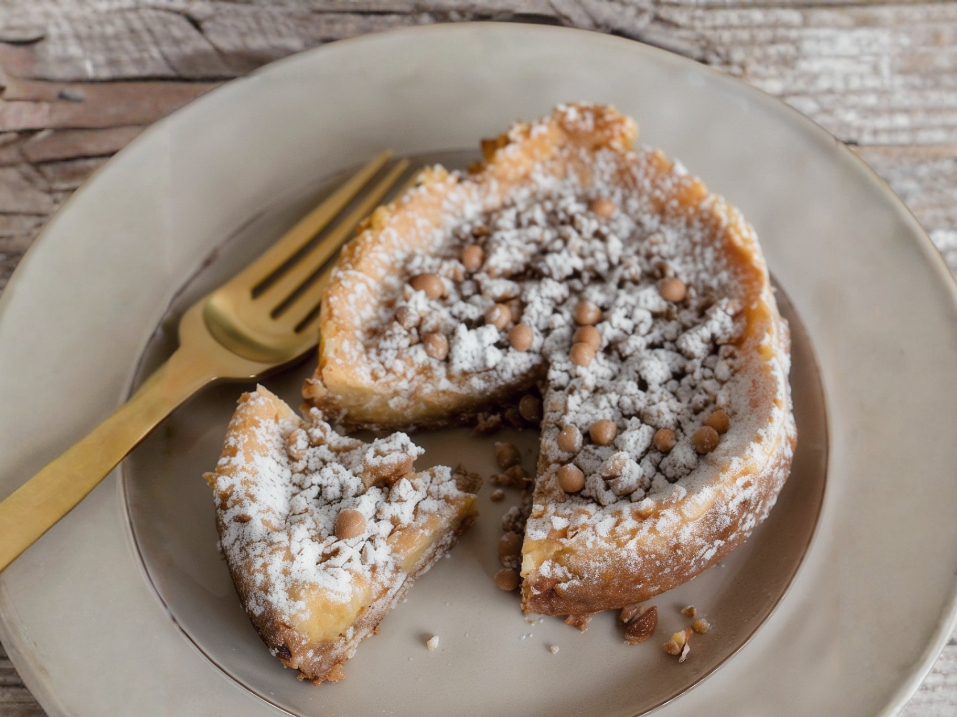 Individual o para compartir entre 2 - Pie de base de galleta de avena con relleno cremoso de ligero sabor a maíz dulce, vainilla y notas de sal.